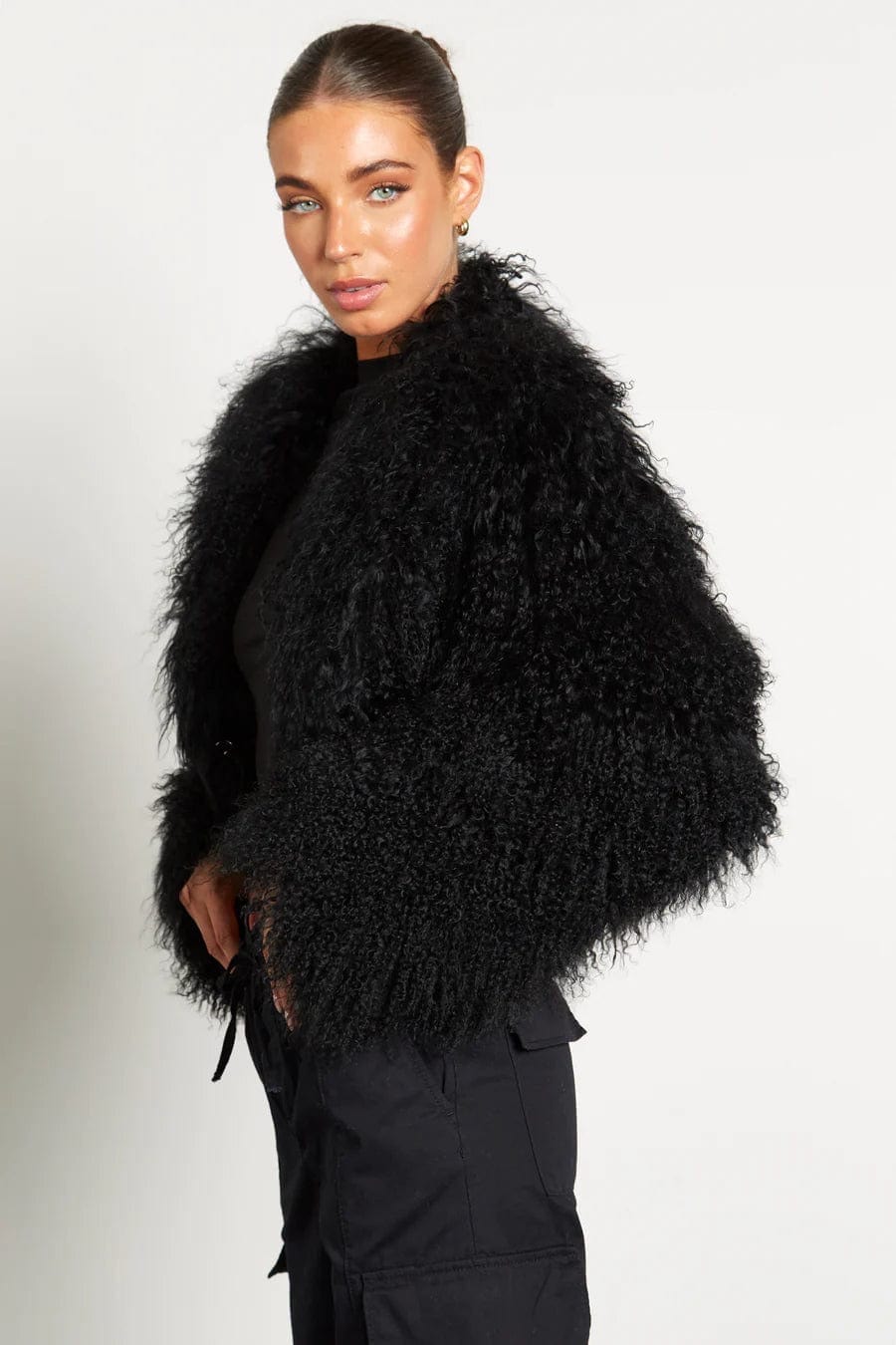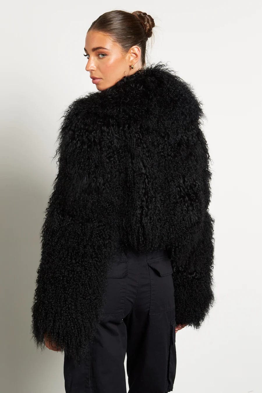 Luxusný mongolský kožuch z pravej kožušiny mongolskej ovce s elegantným golierom. Ideálny pre štýlové zahriatie počas chladných dní.