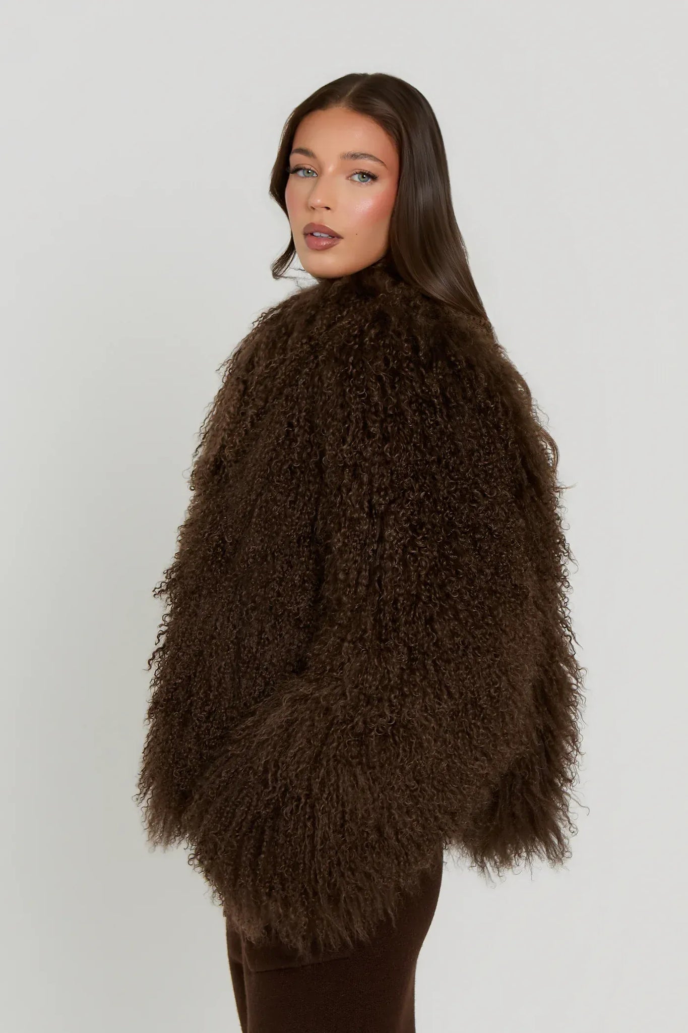 Mongolský krátky kožuch "CLOE" je štýlový a elegantný kúsok vyrobený z pravej kožušiny mongolskej ovce. Tento kožuch s dĺžkou 45 cm ponúka jedinečnú textúru a teplo, ideálny na chladnejšie dni. K dispozícii je v rôznych farbách, ako sú vínová, čierna, biela, nahá a hnedá, a v rôznych veľkostiach od XS po XL. Je skvelou voľbou pre tých, ktorí hľadajú luxusný a moderný kúsok, ktorý sa hodí na rôzne príležitosti.