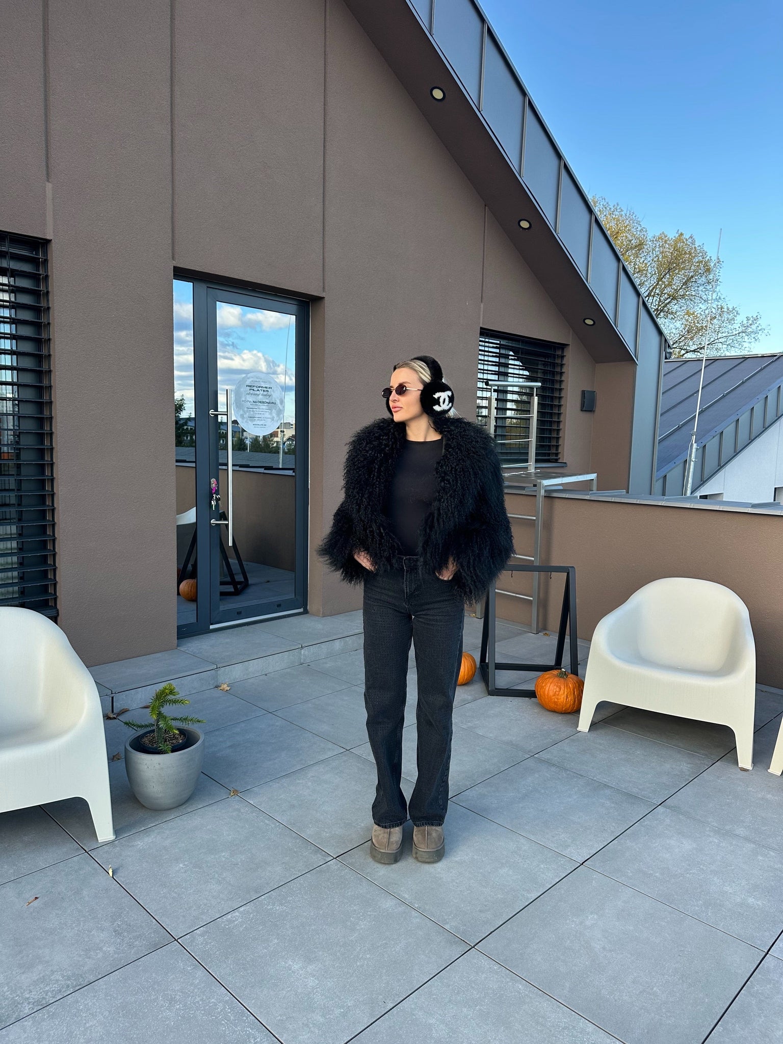 Luxusný mongolský kožuch z pravej kožušiny mongolskej ovce s elegantným golierom. Ideálny pre štýlové zahriatie počas chladných dní.